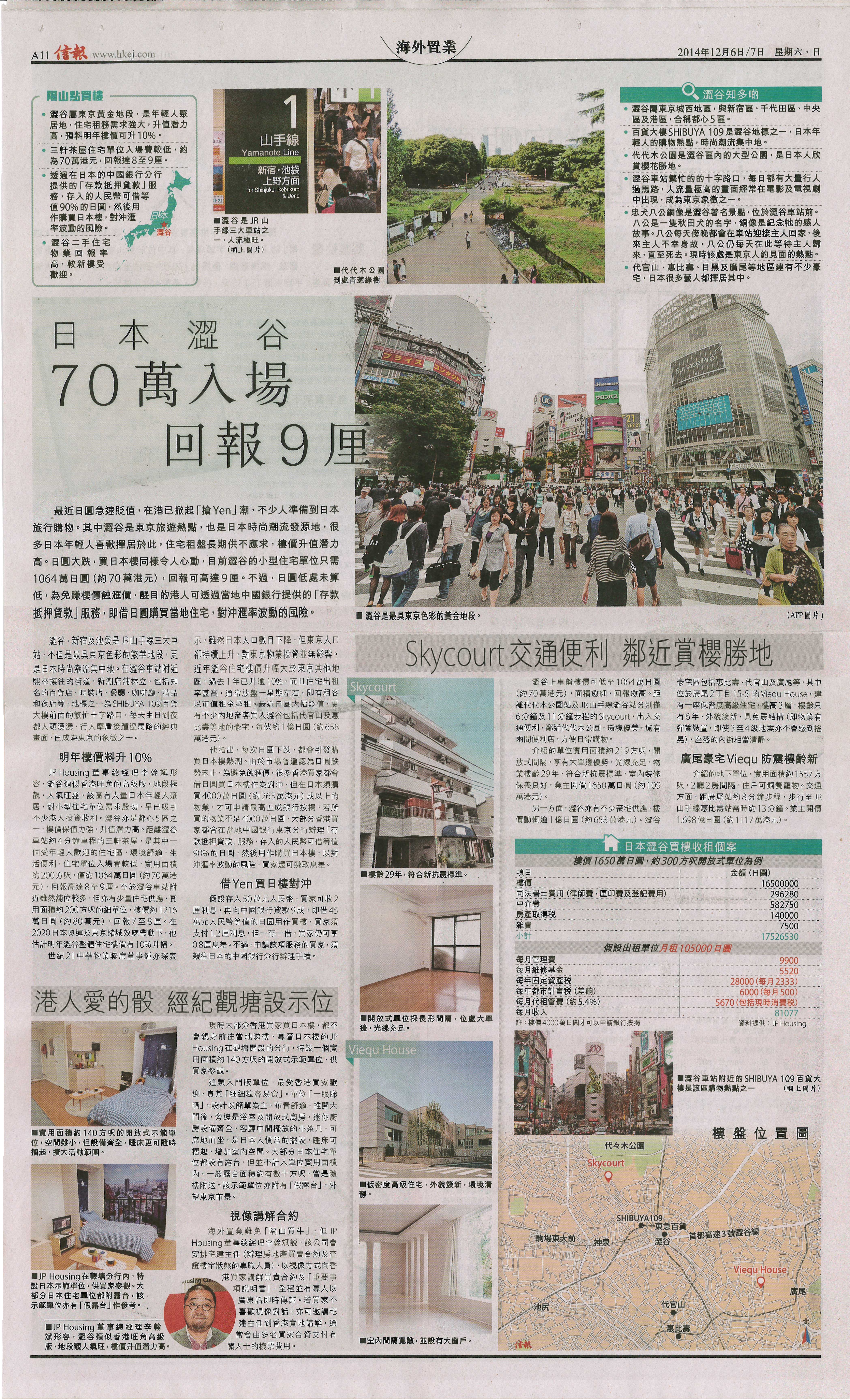 2014-12-09 12月6日《信報》刊登了日本不動產買賣相關新聞及JP Housing社長李翰斌先生的專訪內容12月6日《信報》刊登了日本不動產買賣相關新聞及JP Housing社長李翰斌先生的專訪內容。日圓眨值引發購買日本樓熱潮,明年樓價料升10%小型單位需求殷切. 港人愛的骰, JP Housing 觀塘... |