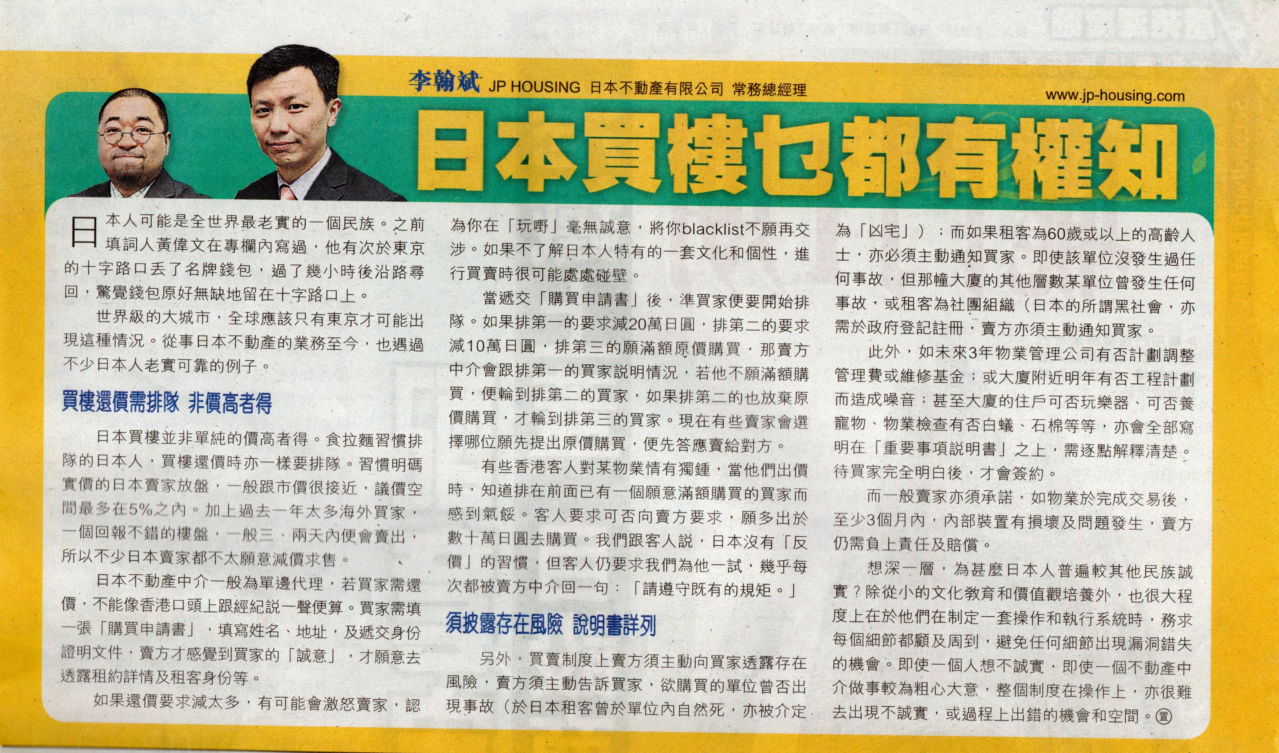 香港人信賴之日本不動產中介權威。 廣受媒體報導,包括日本財經權威《日經新聞》及NHK電視台。 推出全港首本《進擊日本樓》工具書,火速售罄。 東京,香港皆設有辦事處。獨攬日本全國大量筍盤。 買賣,收租,管理一站式專業服務,安心之選。