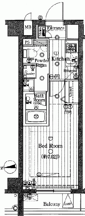 交通:都営大江戸線/東新宿駅 徒歩2分 屋齡:18年 面積:壁芯 22.7m2