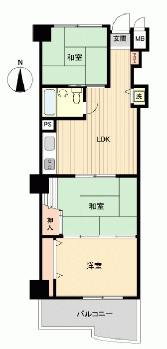 トラフィック:JR伊東線/伊東駅 徒歩-分 建設した年:34年 エリア:壁芯 51.6m2