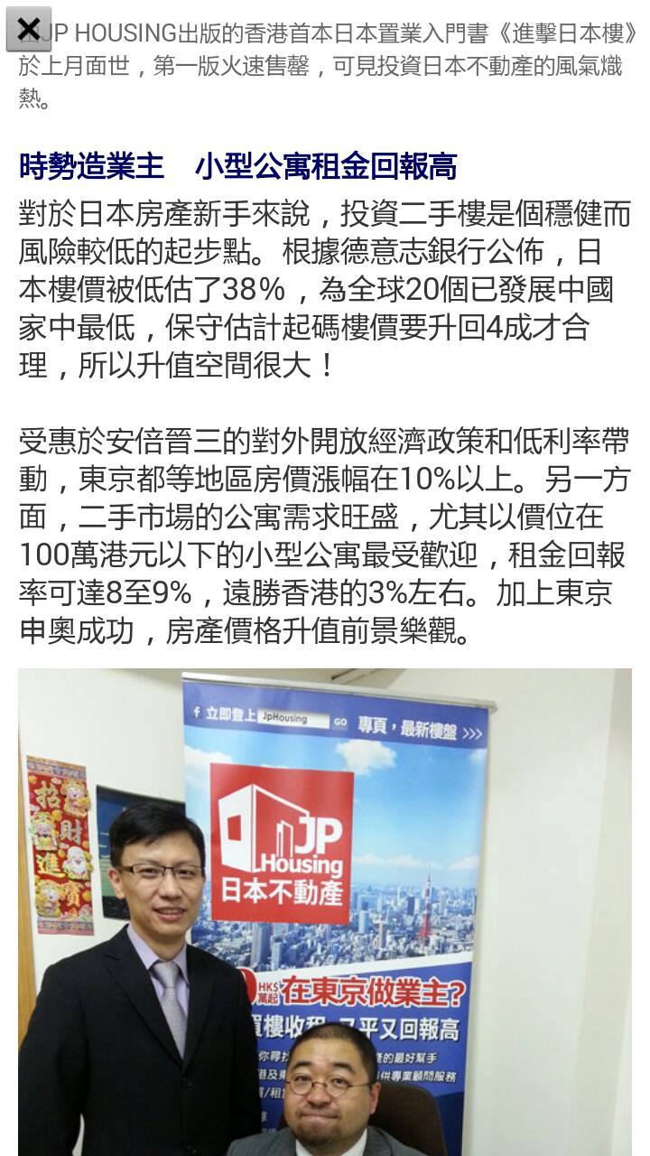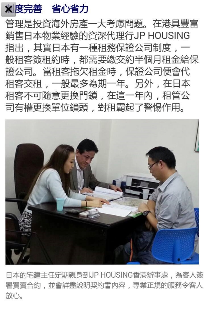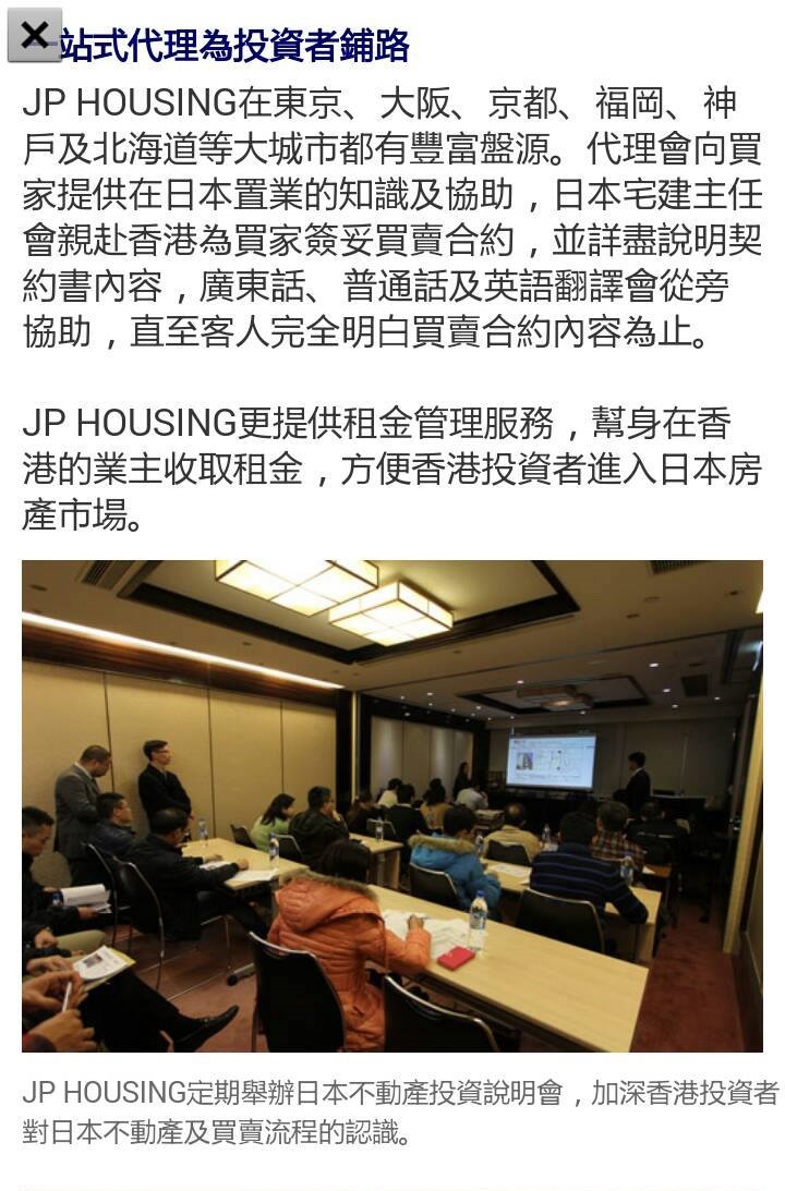 香港人信賴之日本不動產中介權威。 廣受媒體報導,包括日本財經權威《日經新聞》及NHK電視台。 推出全港首本《進擊日本樓》工具書,火速售罄。 東京,香港皆設有辦事處。獨攬日本全國大量筍盤。 買賣,收租,管理一站式專業服務,安心之選。